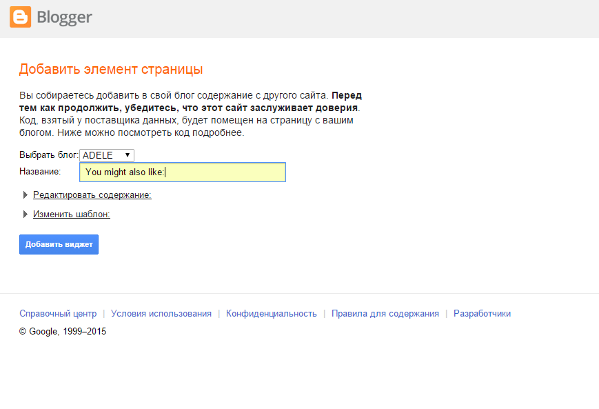 Теперь в названии вводим "You might also like",нажимаем на "Добавить виджет".