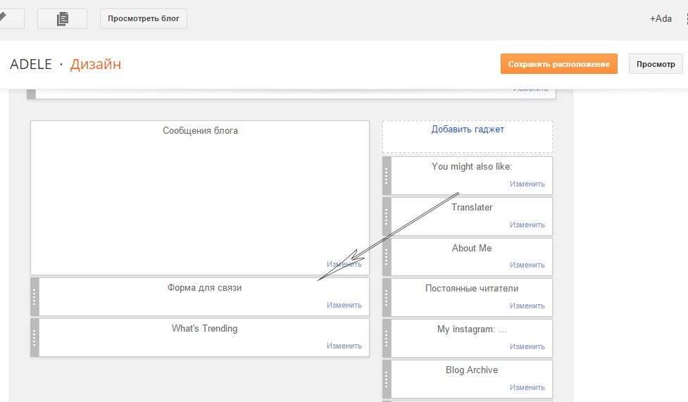 Перемещаем наш виджет под сообщения блога.